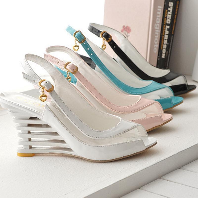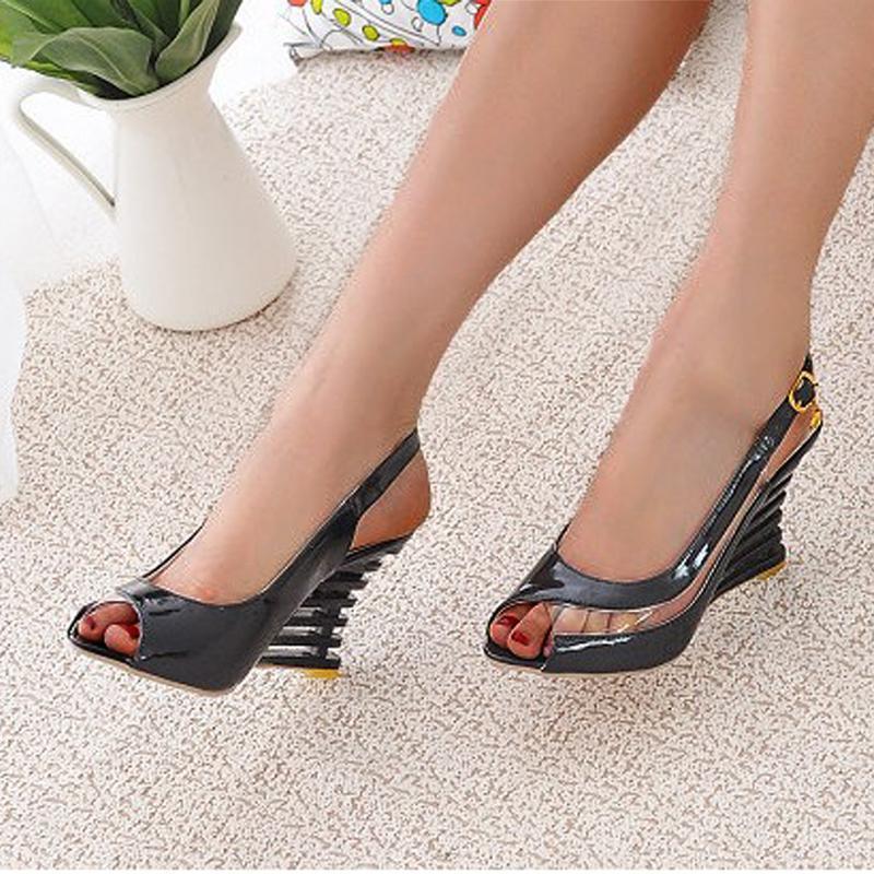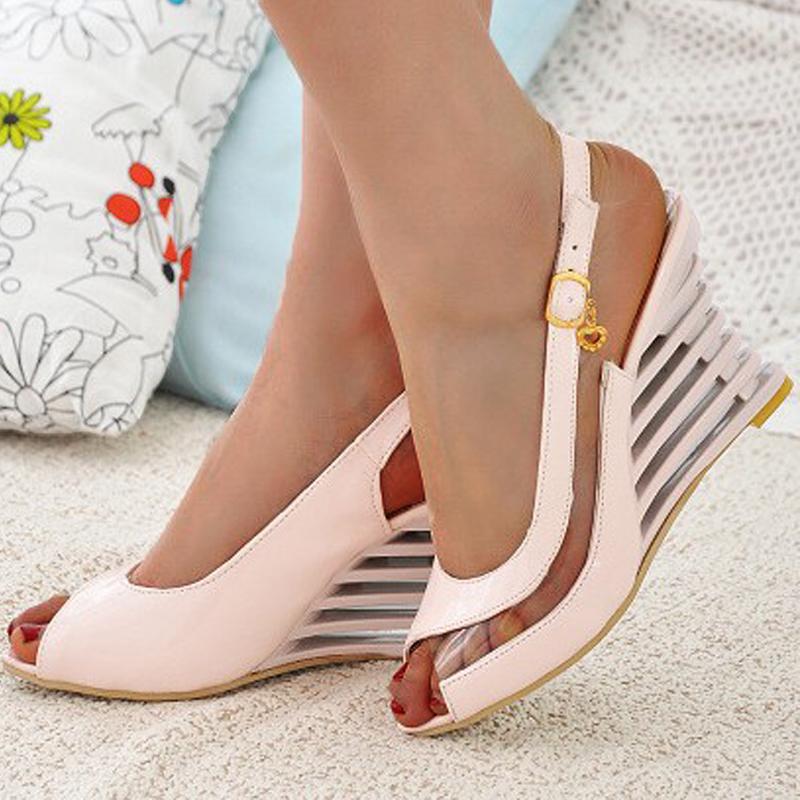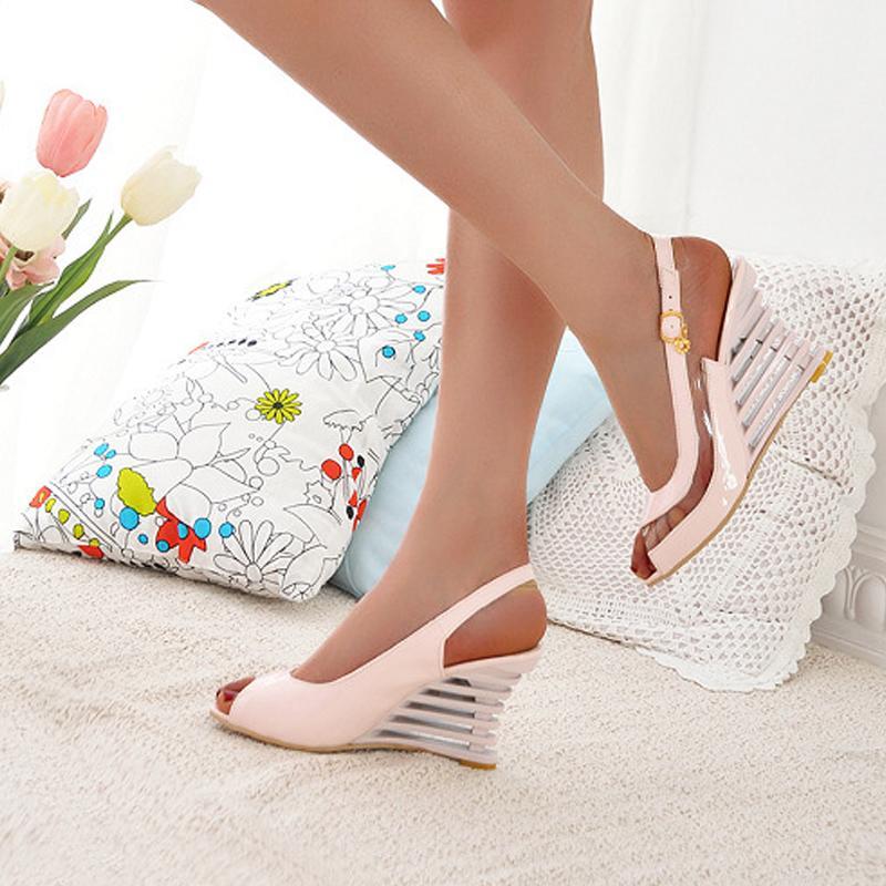 Flache Schnalle Fischmund Keilabsatz Frauen Sandalen