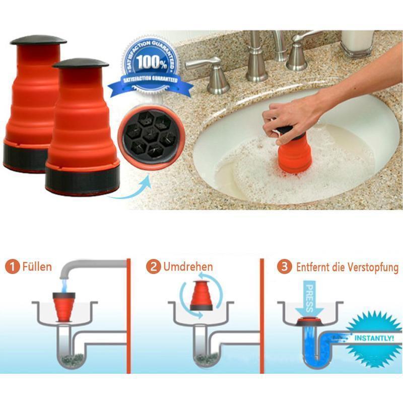 • Das Grundkonzept ist ziemlich einfach und funktioniert sehr ähnlich wie ein Toiletten Kolben, aber wegen seiner Silikon-Ventil ist es in der Lage, eine dichtere Abdichtung rund um den Stahlrohrablauf zu schaffen, der normalerweise im Badezimmer oder in der Küchenspüle und in der Badewanne und Dusche zu finden ist. Die Tatsache, dass es das Wasser direkt in den Abfluss schießt, ist viel besser, als es hochgezogen wird.