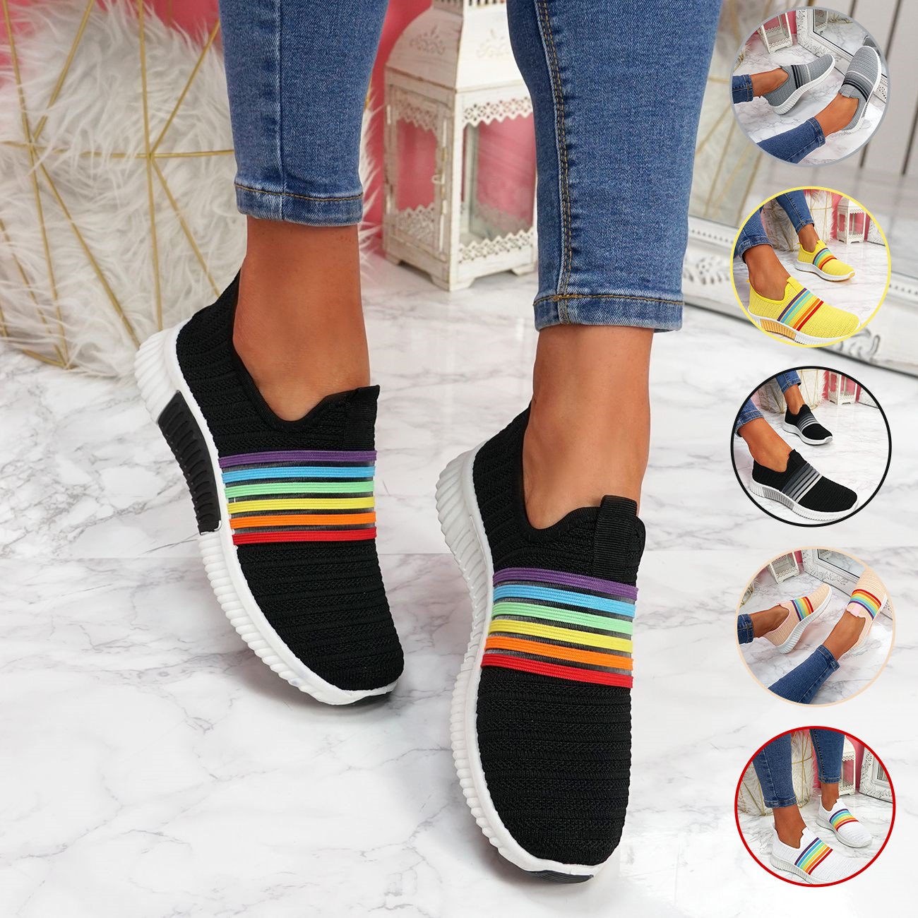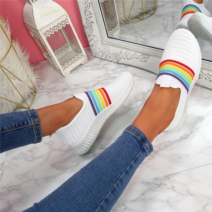 Lässige Flache Boden Damen Regenbogen Sportschuhe