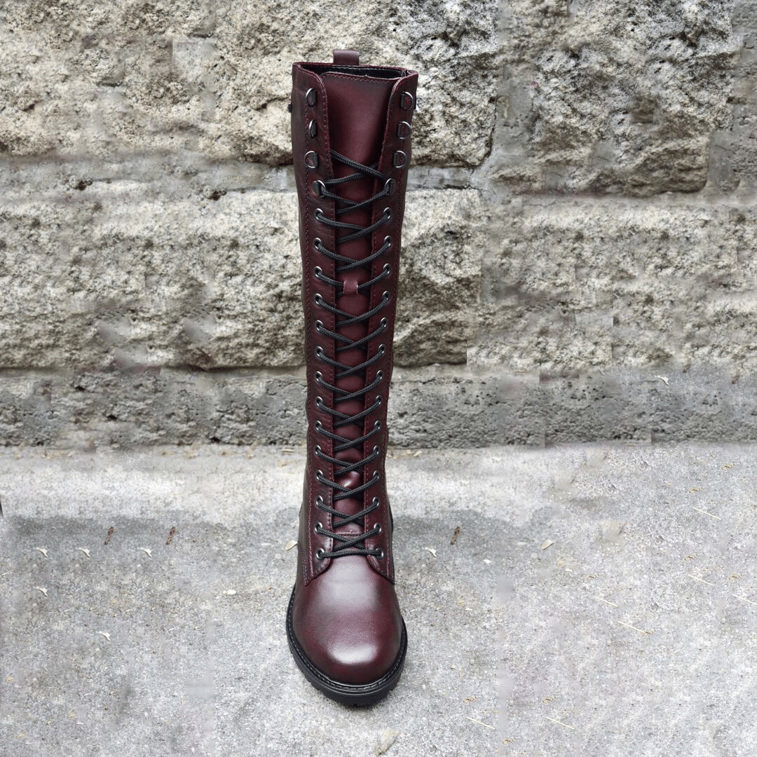 Damen Klassische Hohe Lederstiefel mit Reißverschluss